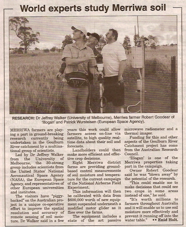 - Funding Boost for Data Rich Remote Soil Water Mapping, Melbourne UniNews, 14(6), 18 April - 2 May 2005. (pdf 14kB)