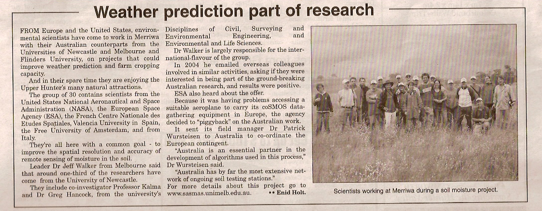- Weather Prediction Part of Research, Hunter Valley News, 16 November 2005. (jpg 356kB)